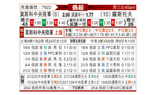 [俄超] 莫斯科中央陆军vs罗斯托夫