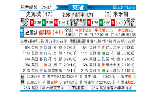 [英冠] 斯托克城vs米尔沃尔