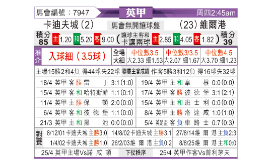[英甲] 卡迪夫城vs维尔港