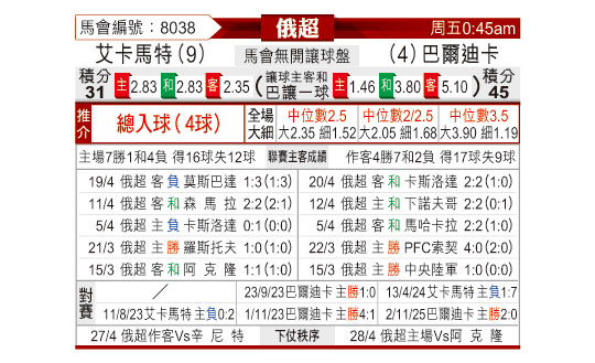 [俄超] 格罗兹尼特里克vs巴蒂卡