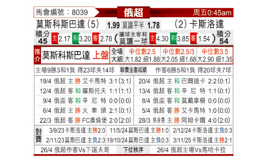 [俄超] 莫斯科斯巴达vs克拉斯诺达尔