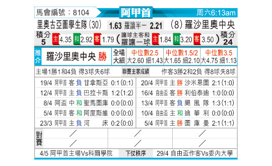 [阿甲] 里奥夸尔托学生队vs罗萨里奥中央