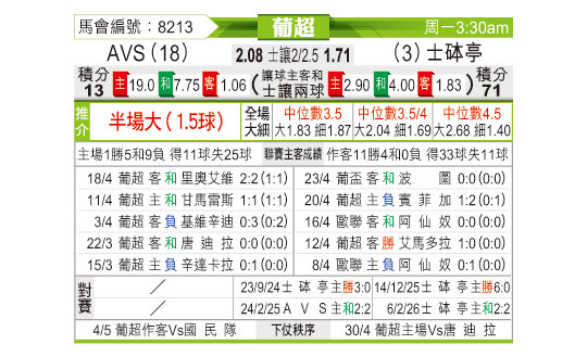 [葡超] AVS俱乐部vs葡萄牙体育