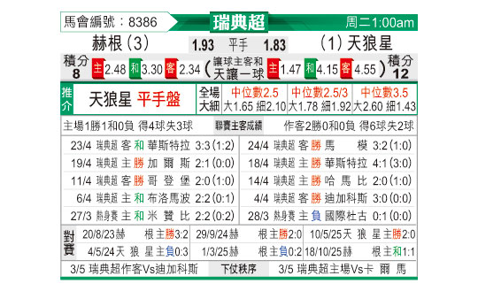[瑞典超] 赫根vs天狼星