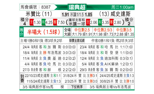 [瑞典超] 米亚尔比vs哈尔姆斯塔德